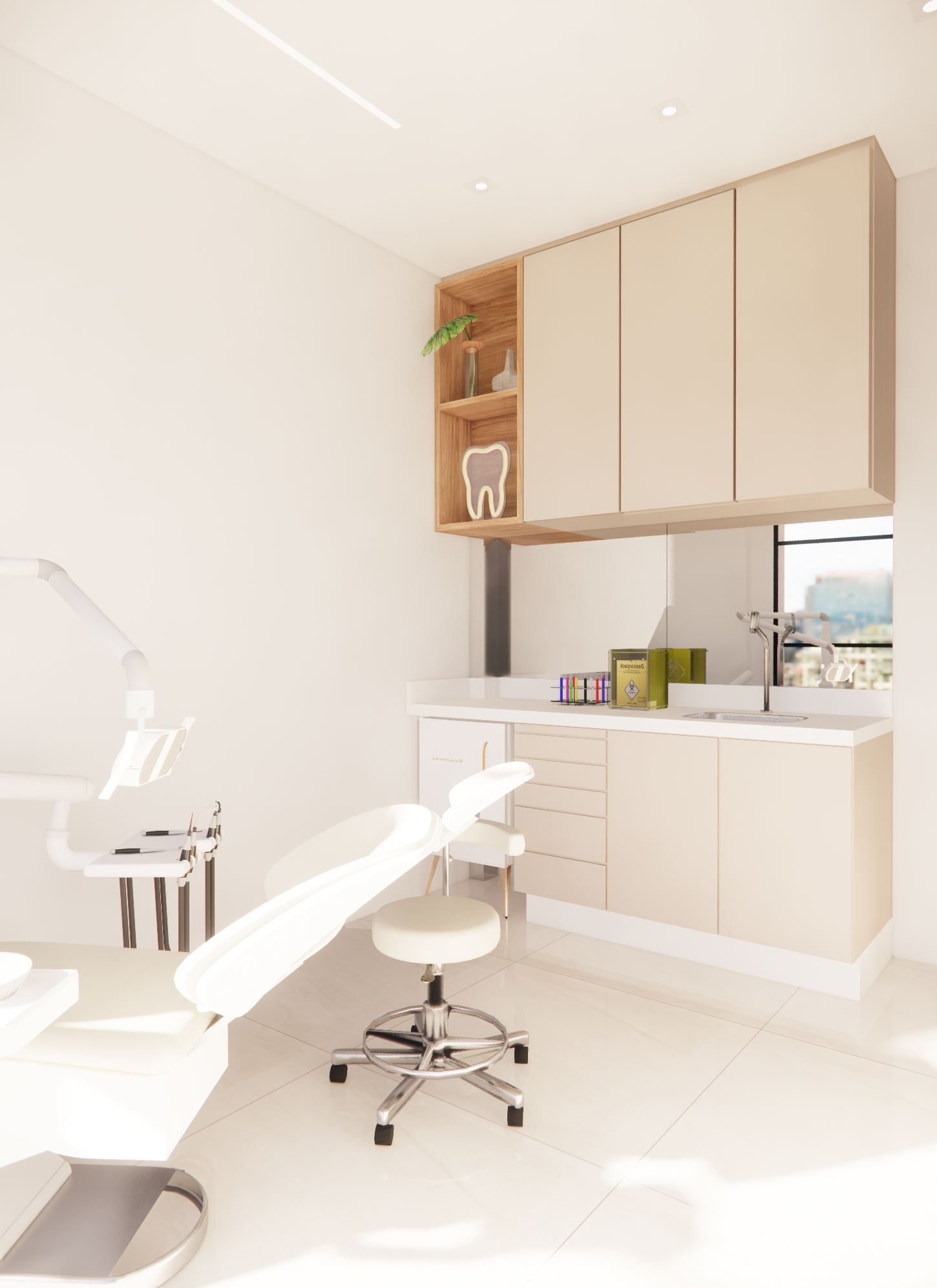Neste projeto, nossa missão foi desenvolver um complexo odontológico que não só atenda às necessidades funcionais, mas que também proporcione uma experiência excepcional aos pacientes. O espaço foi projetado meticulosamente para incluir dois consultórios modernos, uma sala de estética sofisticada, uma área de esterilização eficiente e ambientes de apoio essenciais, como copa, sanitários e recepção.